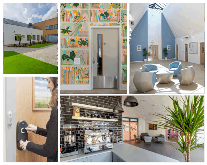 - Art: Introducing art into the design of mental health hospitals can provide patients with a creative outlet for self-expression, which can help improve their mental health and overall well-being. Mental health charity Hospital Rooms LINK specialises in bringing the healing power of art into clinical mental health inpatient environments. We’re proud to be supporting the charity by incorporating two of their original artworks into our Anti-Ligature En-Suite Doors LINK. Find out more about our partnership LINK and the healing power of art LINK.