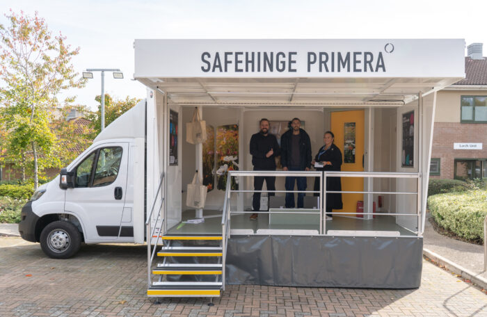 Meet Doora, our mobile demonstration vehicle, fully fitted with a full door ligature alarm, anti barricade doorset, and en suite door. She has become a familiar sight at trusts across the country, giving estates teams the chance to see exactly what they are considering, up close and in context.