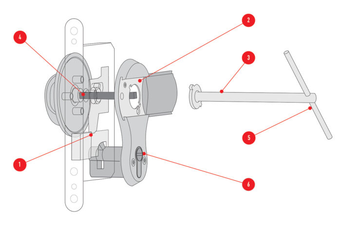 Safety spindle shears under heavy resistance, ensuring entry if turn/pull is immobilised. So even in the most serious barricade attempts, where the service user attempts to jam the turn/pull with their bed or body, swift access is achieved without lockcase damage.