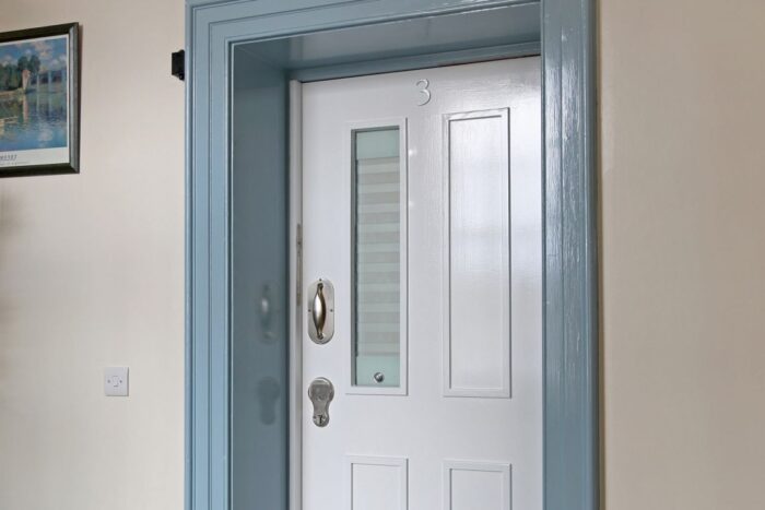 Secure parking stations are fitted beside each door on the corridor wall.